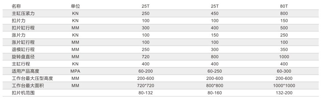 以上为四柱带旋转工作台结构型式的扣片机,我公司也可定制生产下模(涨芯、涨套)升降的四柱型式两工位扣片机,工作台落地式大型下拉式扣片机,特殊规格的锥形定子铁芯扣片机和Y系列400以下扣片机。