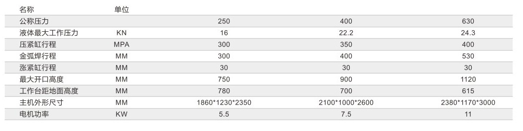 3、压紧力、涨紧力和焊接油缸的上下移动力均可分别调整。液压系统采用滑阀和叠加阀系统,调试维修方法简便简单,使用性能可靠。